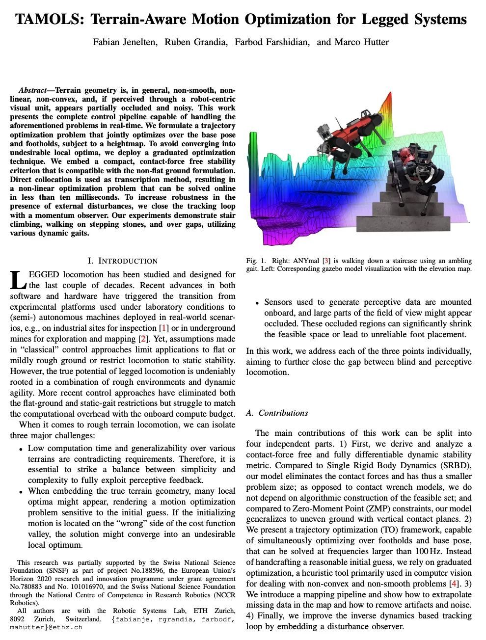 [RO] TAMOLS: Terrain-Aware Motion Optimization for Legged Systems