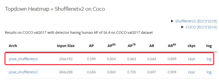 去翻了翻文档里已有的模型记录,虽然当前mmpose并没有轻量模型+回归方法的baseline,但我找到了ResNet50+Regression和ShuffleNetV2+Heatmap在COCO上的两个baseline,所以我很自然地可以参考这两个配置文件来搭建我的目标。