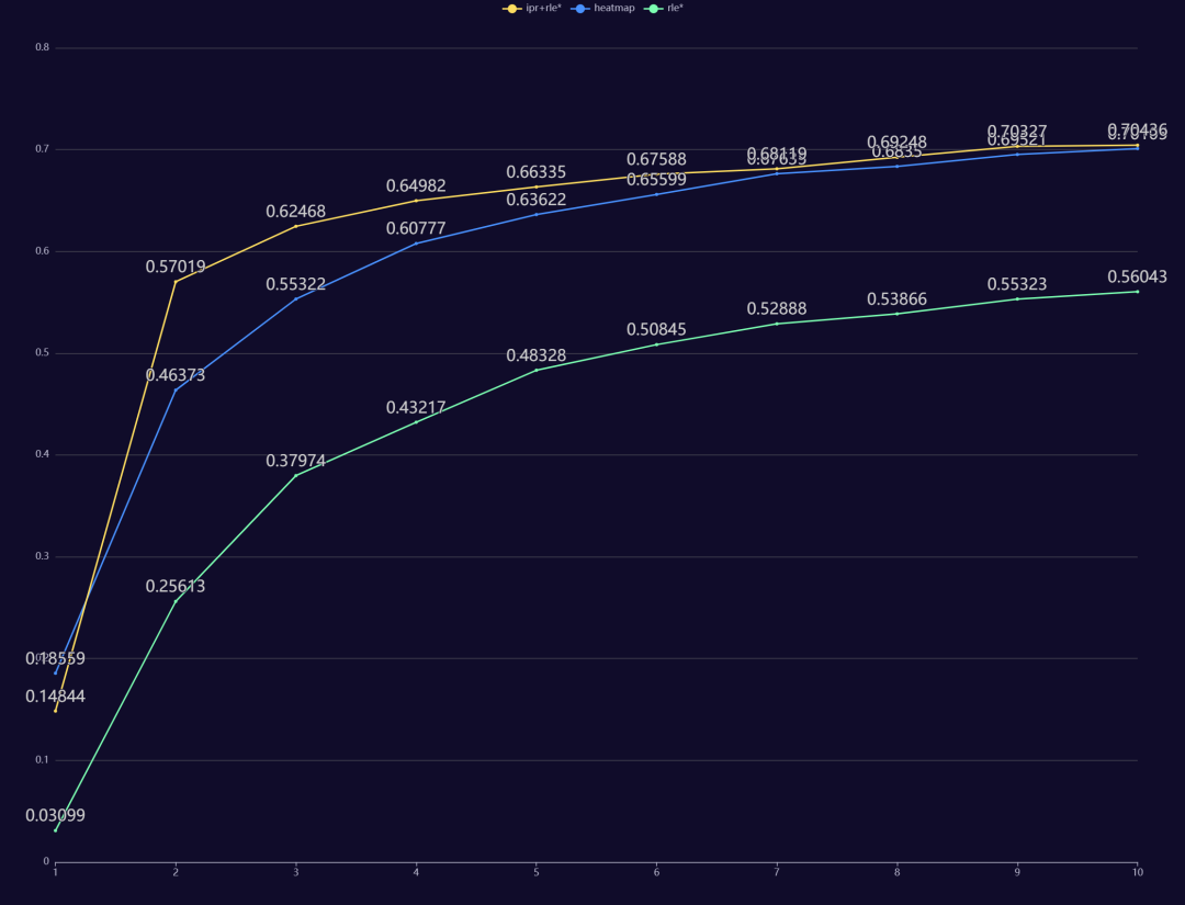| 21 | 320x320, w/o 1024d, sa-simdr + sampling-argmax(tri,n=10)+rle* | 0.8363 | 83.4973 | 22.7973 |