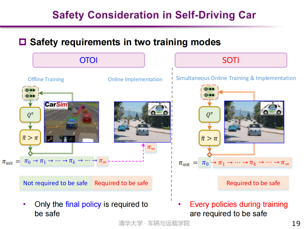 第二,同时训练和应用策略,即SOTI方法:这是利用强化学习的探索试错机制,通过在线探索环境产生数据,实现自动驾驶策略的在线自我更新。这类方法要求强化学习算法必须进行在线部署,从而进行在线地探索和在线地训练。