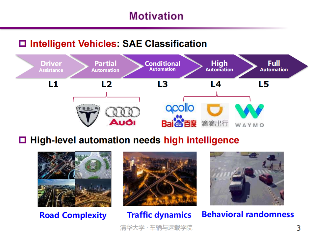 智能化是汽车新四化变革的重要方向之一,也是人工智能(AI)的重要应用领域,受到学界和业界的广泛关注。目前,L1和L2级别的智能汽车已经实现商业化应用。具有更高智能性、接近人类驾驶水平的高级别自动驾驶汽车,是该领域每一个企业、每一个团队追求的理想和目标。因为城市道路交通场景中道路结构的高度复杂性、交通流的高度动态性以及交通参与者的高度随机性等,L3和L4级的自动驾驶功能实现具有挑战性,这需要更加安全可靠的环境感知能力和更加智能、实时、高效的决策控制能力。