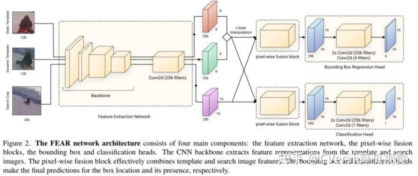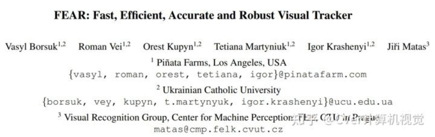 我们提出了 FEAR,一种新颖、快速、高效、准确和稳健的孪生(Siamese)视觉跟踪器。
