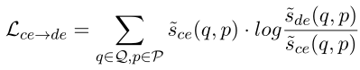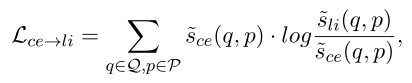 这里,Lce是交叉编码器在标记数据上的监督训练损失。此外,最终损失还包括交叉编码器到双编码器的蒸馏损失,即: