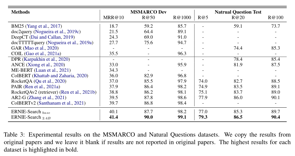 作者在两个大型 QA 数据集上评估了本文提出的方法:MS MARCO Passage Ranking和 Natural Question (NQ) ,本文的结果达到了与几个baseline相当或更好的性能。所提出的解决方案在开放域 QA 任务上建立了新的最先进的性能。
