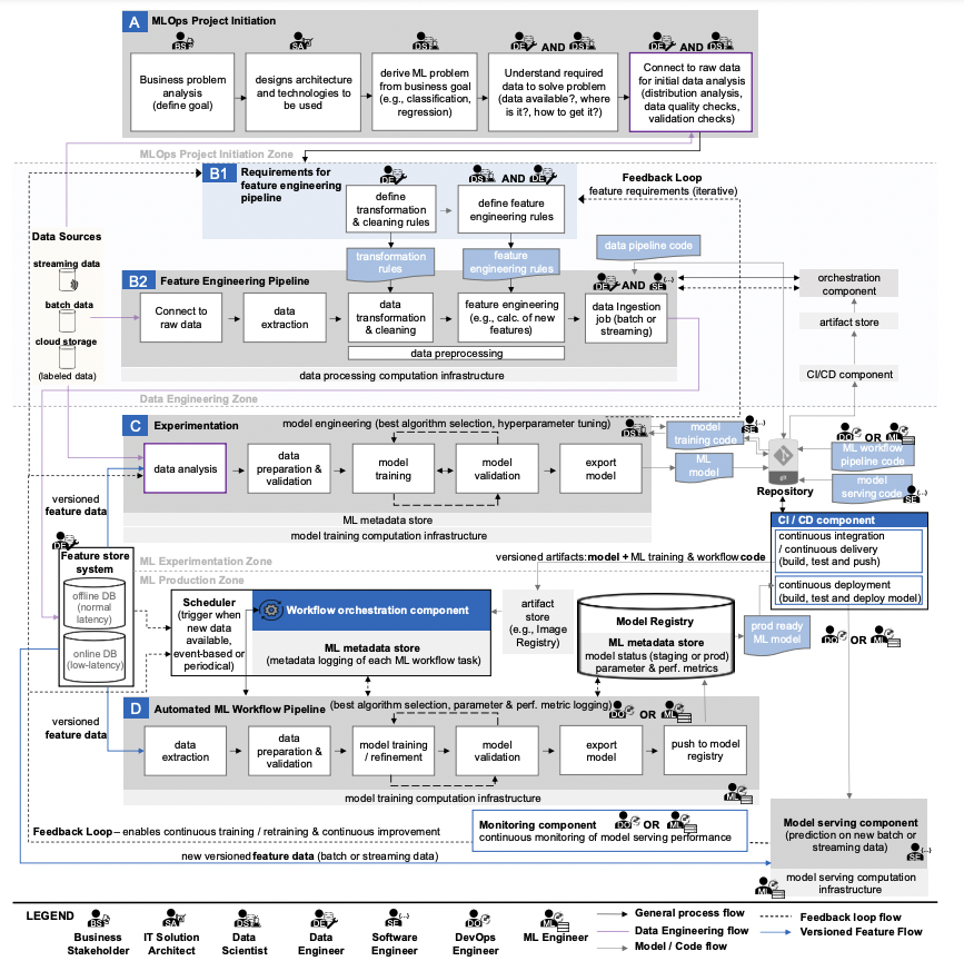 然而,MLOps 仍然是一个模糊的术语,它的后果是研究人员和专业人士是模棱两可的。为了解决这个差距,我们进行混合方法研究,包括文献综述,工具审查和专家访谈。由于这些调查,我们提供必要的汇总概述原则、组件和角色,以及相关的架构和工作流程。此外,我们提供了一个定义MLOps 并突出该领域的开放挑战。最后,这工作为 ML 研究人员和从业者提供了指导想要使用指定的自动化和操作他们的 ML 产品一套技术。