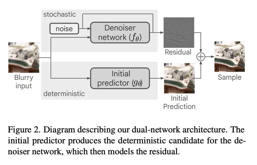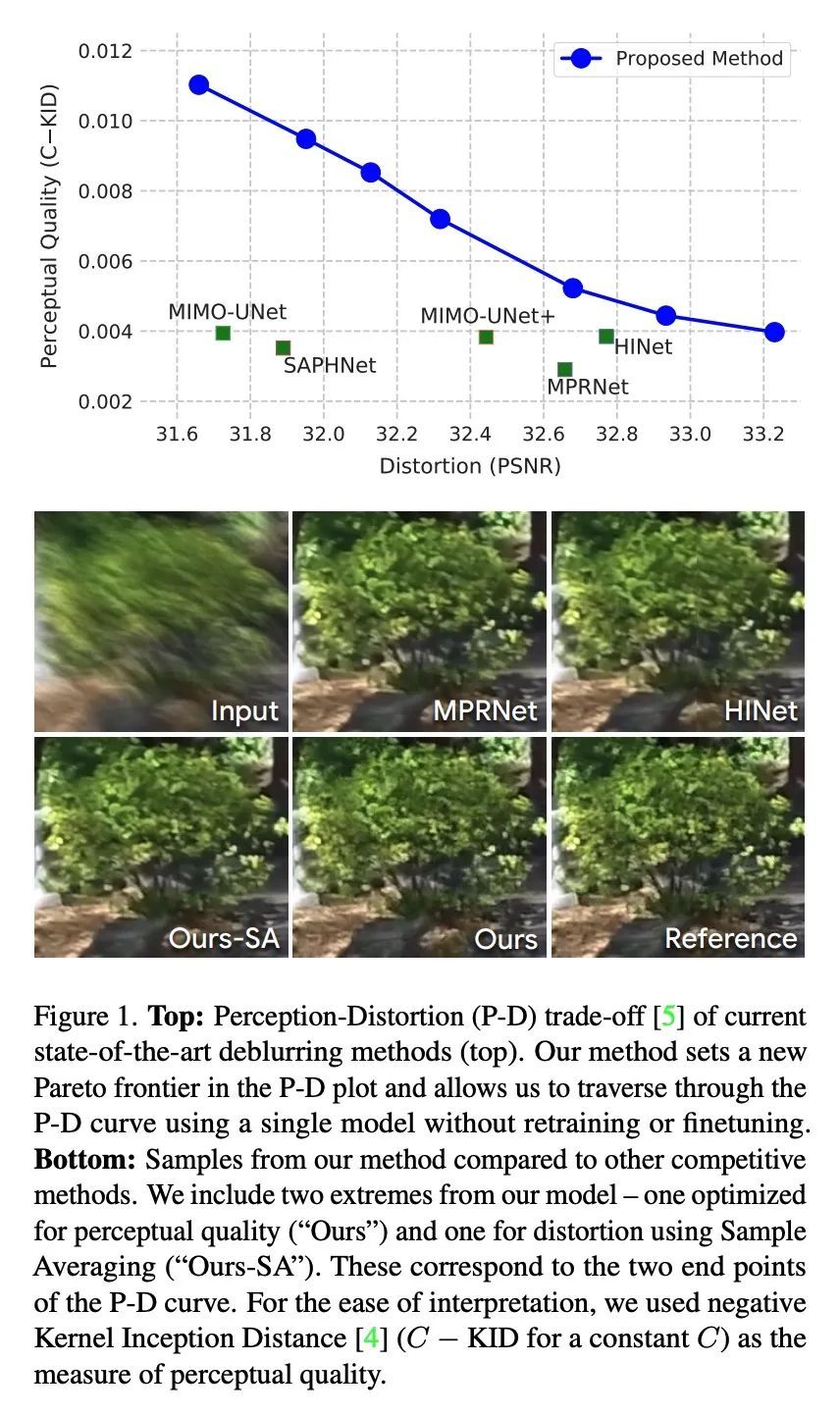 基于随机细化的图像去模糊。图像去模糊是一个棘手的问题,对于一个给定的输入图像有多种合理的解决方案。然而,大多数现有的方法对干净的图像产生一个确定的估计,并被训练成最小的像素级失真。众所周知,这些指标与人类感知的相关性很差,往往导致不现实的重建。本文提出一种基于条件扩散模型的盲去模糊替代框架。与现有技术不同,该方法训练一个随机采样器,该采样器改进了确定性预测器的输出,并能为给定的输入产生一组不同的可信重建。这导致了在多个标准基准上,感知质量比现有最先进方法有了明显的改善。与典型扩散模型相比,所提出的预测和改进方法还能实现更有效的采样。结合精心调整的网络结构和推理程序,该方法在失真指标(如PSNR)方面具有竞争力。试验结果显示了基于扩散的去模糊方法的明显优势,并对广泛使用的产生单一的、确定性的重建的策略提出了挑战。