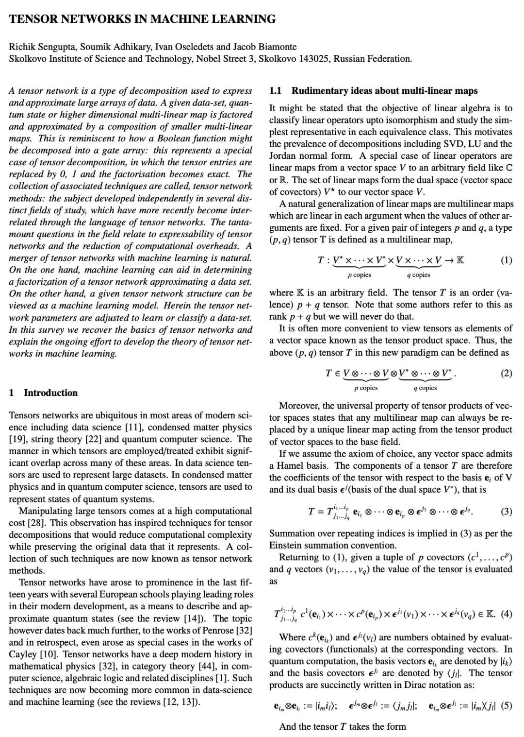 R Sengupta, S Adhikary, I Oseledets, J Biamonte