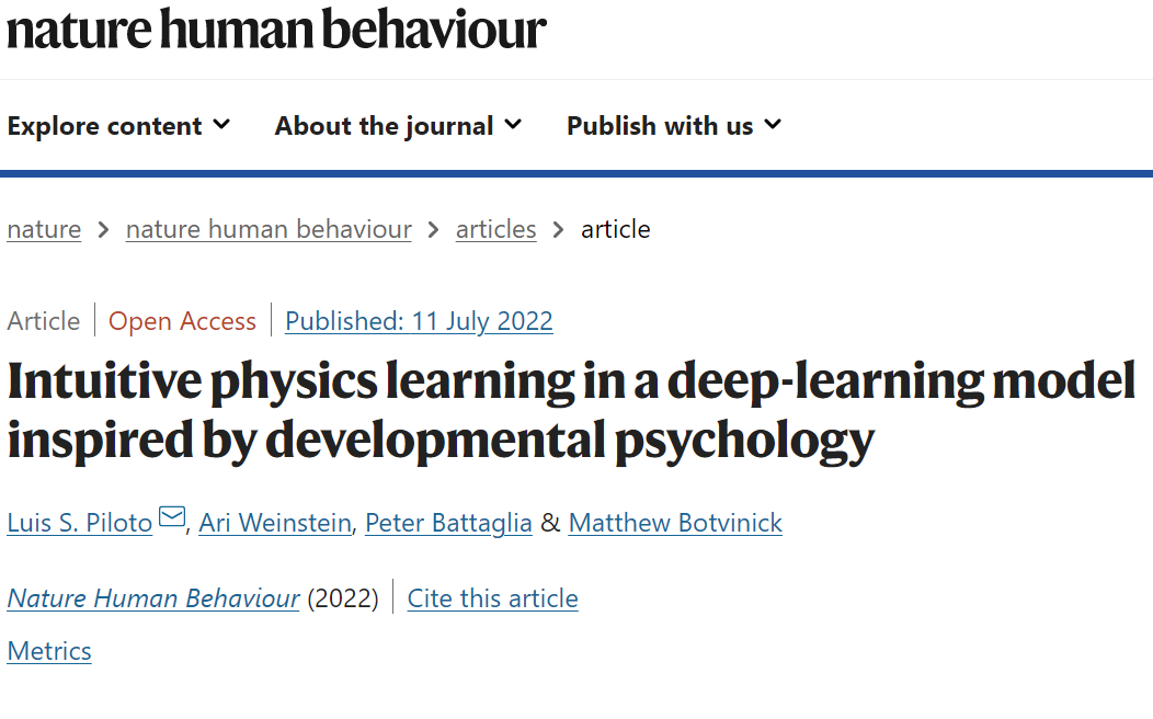 DeepMind 的计算机科学家 Luis Piloto 及其同事希望为人工智能 (AI) 开发类似的测试。该团队使用立方体和球等简单物体的动画视频训练了一个神经网络,该模型通过从大量数据中发现模式来学习。研究论文于 7 月 11 日发表在《Nature Human Behaviour》上。