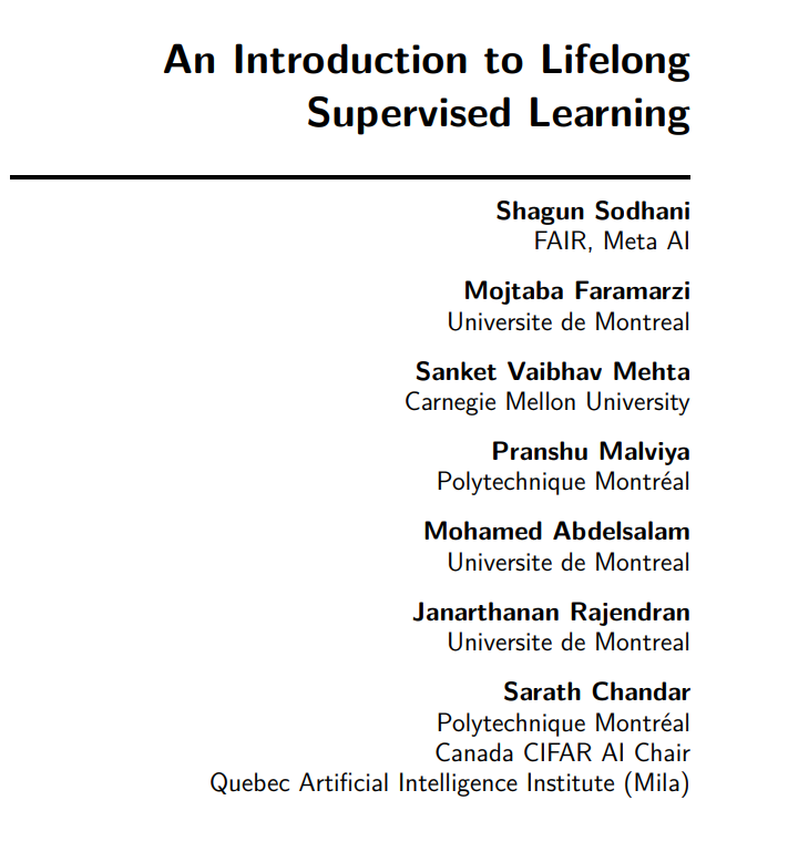 本入门书试图对终身学习的不同方面提供一个详细的总结。我们从第2章开始,它提供了终身学习系统的高级概述。在本章中,我们讨论了终身学习的主要场景(2.4节),介绍了不同终身学习方法的高层次组织(2.5节),列举了理想的终身学习系统(2.6节),讨论了终身学习与其他学习模式的关系(2.7节),描述了用于评估终身学习系统的常用指标(2.8节)。这一章对终身学习的新读者更有用,并希望在不关注具体方法或基准的情况下了解该领域。