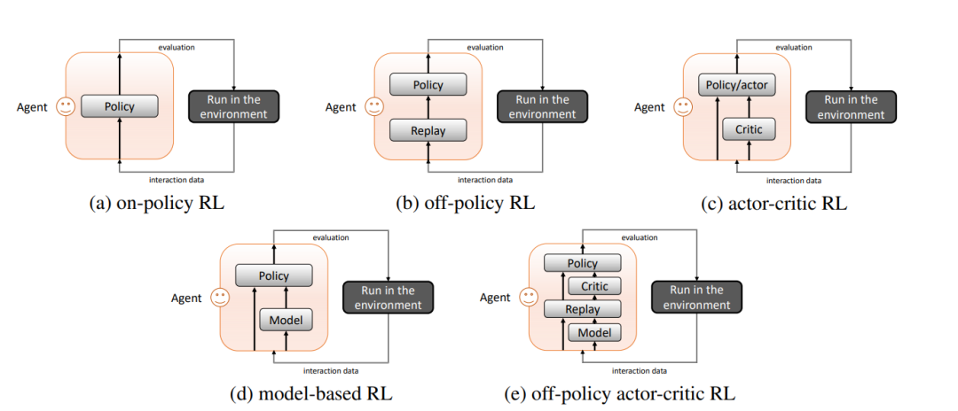 RL算法的体系结构。图中显示了RL的训练迭代,重点是如何利用交互数据。