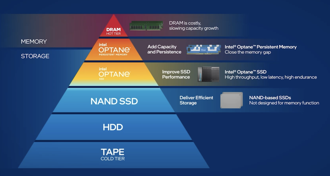 和纯SSD方案相比,现在会有更好的解决方案,比如傲腾持久内存:它介于内存跟SSD之间,可以将热数据做分布式存储,就能一定程度地减缓“内存墙”的问题。
