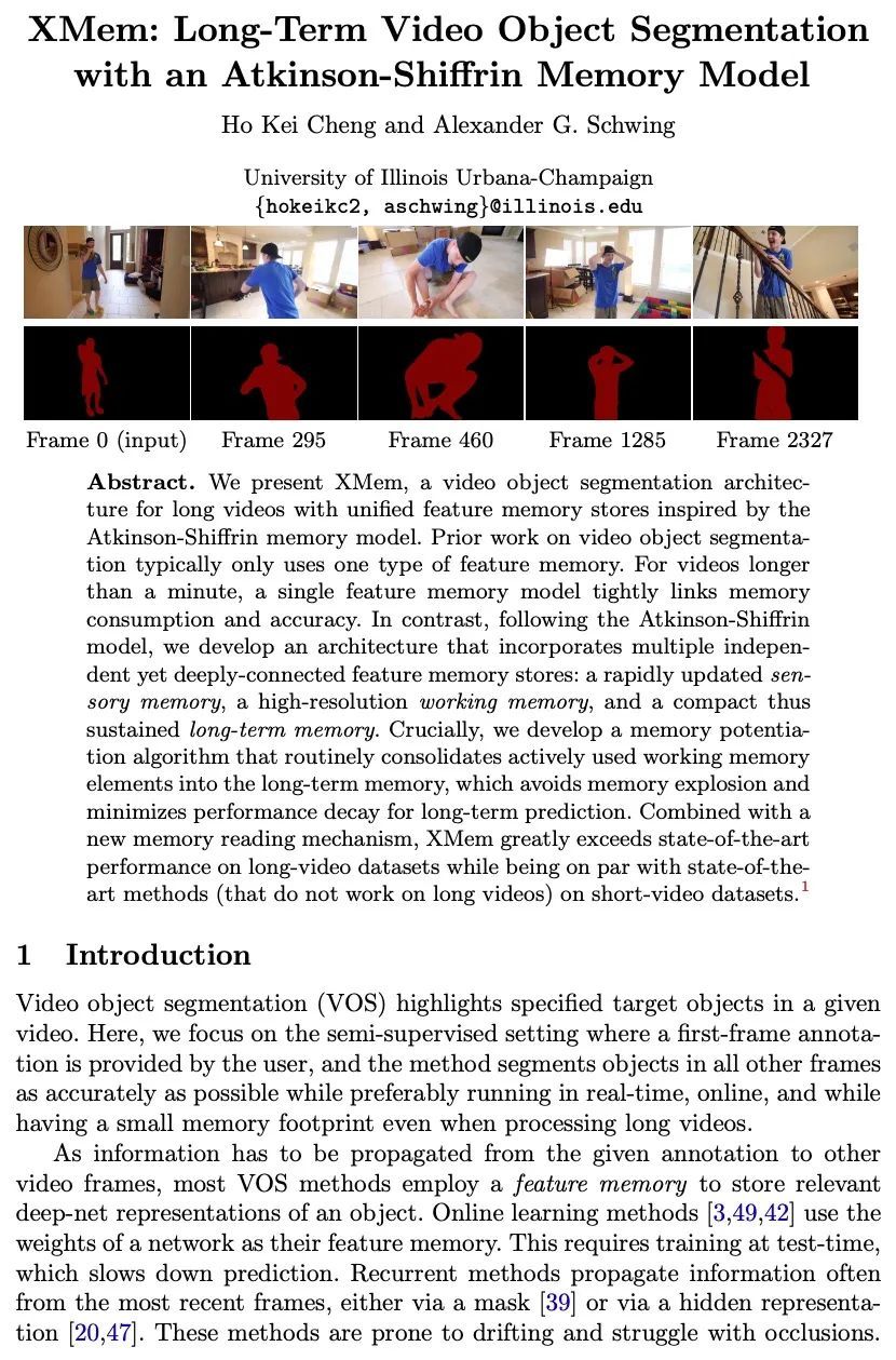 5、[CV] XMem: Long-Term Video Object Segmentation with an Atkinson-Shiffrin Memory Model
