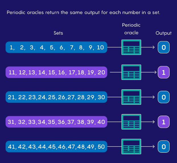 它们可能具有随机行为,如果输入在某个随机范围内(例如,12 到 67)输出「是」,否则输出「否」。或者它们可能是周期性的,因此 1 到 10 之间的输入返回「是」,11 到 20 产生「否」,21 到 30 再次产生「是」,依此类推。