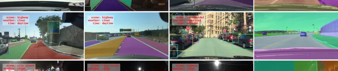 UCB的全天候全光照大型数据集,包含1,100小时的HD录像、GPS/IMU、时间戳信息,100,000张图片的2D bounding box标注,10,000张图片的语义分割和实例分割标注、驾驶决策标注和路况标注。官方推荐使用此数据集的十个自动驾驶任务:图像标注、道路检测、可行驶区域分割、交通参与物检测、语义分割、实例分割、多物体检测追踪、多物体分割追踪、域适应和模仿学习。