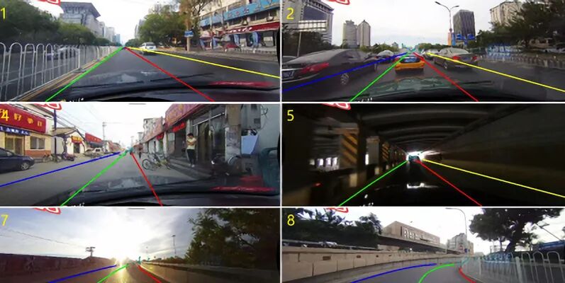 CULane 是一个大规模的具有挑战性的数据集,用于交通车道检测的学术研究。它是由安装在北京不同司机驾驶的六辆不同车辆上的摄像头收集的。收集了超过 55 小时的视频,提取了 133,235 帧。在每一帧中,交通车道都用三次样条手动注释。对于车道标记被车辆遮挡或看不见的情况,仍根据上下文进行车道注释。障碍物另一侧的车道没有注释。在这个数据集中,主要关注的是四车道标记的检测,这在实际应用中是最受关注的。其他车道标记没有注释。