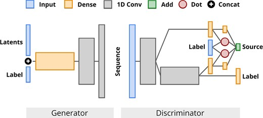 在 ProteoGAN 的生成器和筛选器中,都含有卷积层和跳过连接。其中在生成器中,标签与结构中的潜在噪声向量输入进行链接。在筛选器中,研究人员对各种不同的条件反射机制进行了探究。