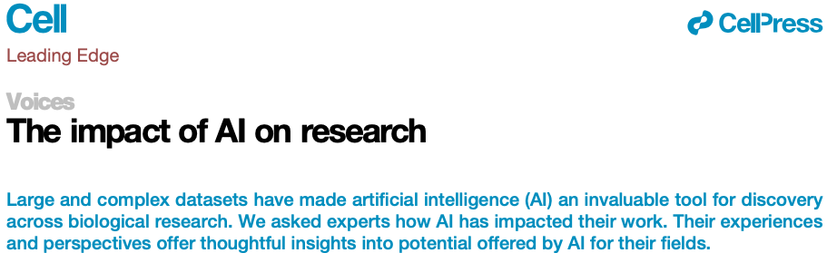 2022年7月21日,Cell Voices上发表了题为“The impact of AI on research"的文章。多位领域大牛给出了评论与大胆的预测。