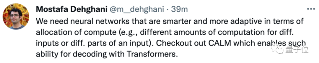 有网友表示,我们就是需要这样更智能和自适应的模型,显然CALM的解码器已经做到了: