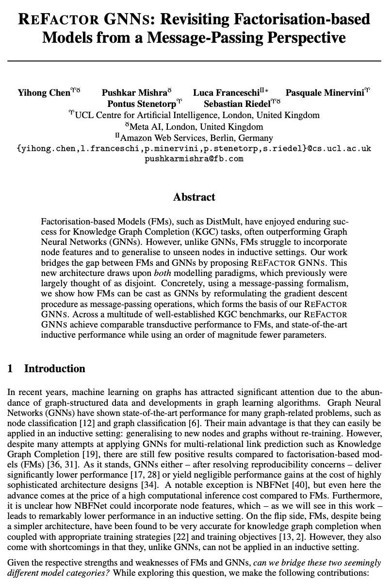 [LG] ReFactorGNNs: Revisiting Factorisation-based Models from a Message-Passing Perspective