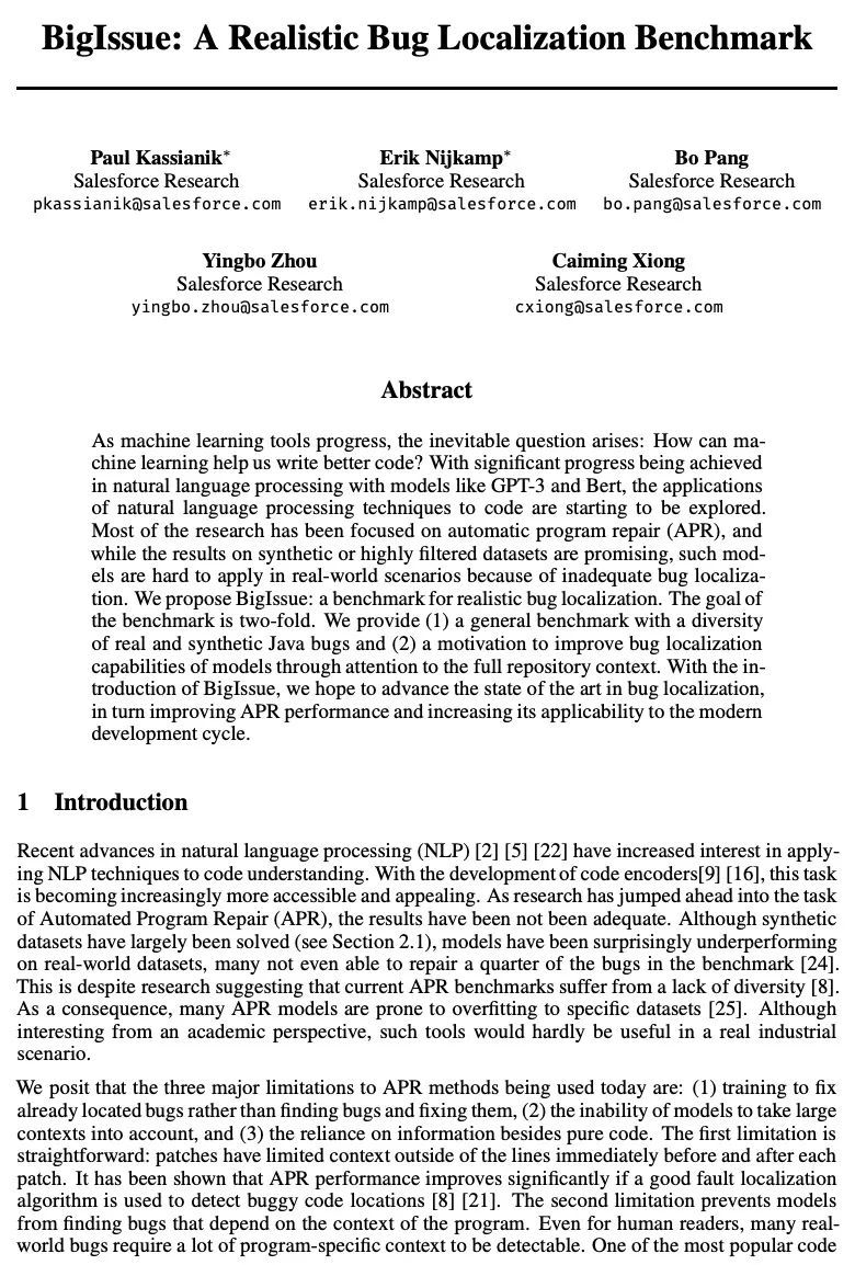 [LG] BigIssue: A Realistic Bug Localization Benchmark