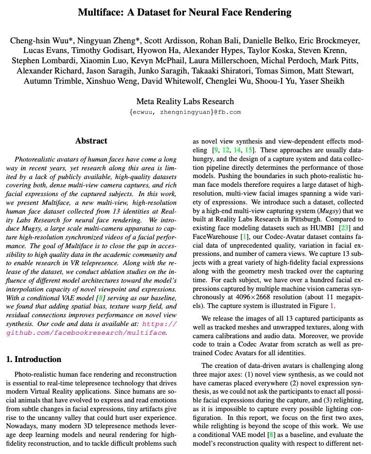 5、[CV] Multiface: A Dataset for Neural Face Rendering
