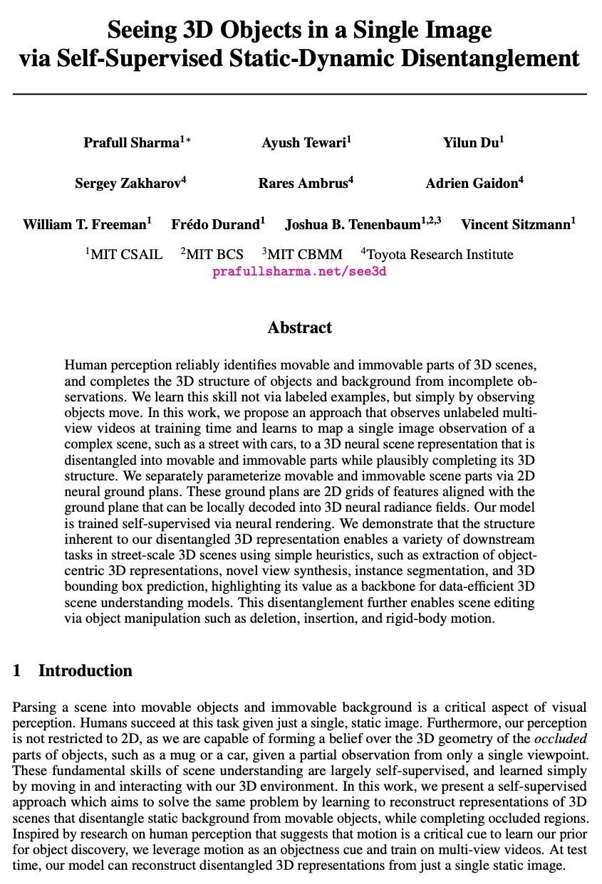 P Sharma, A Tewari, Y Du, S Zakharov, R Ambrus, A Gaidon, W T. Freeman, F Durand...