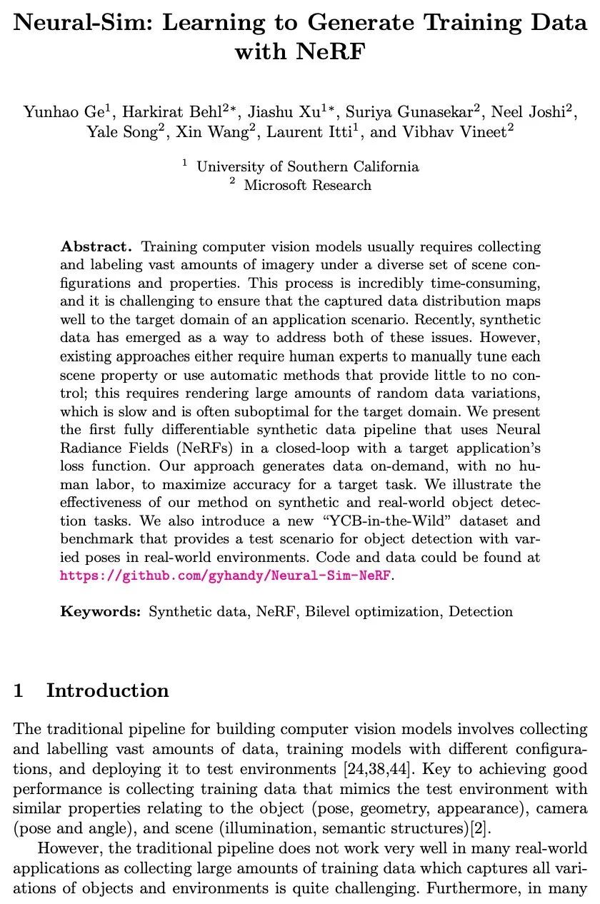 Neural-Sim:基于NeRF的训练数据生成学习