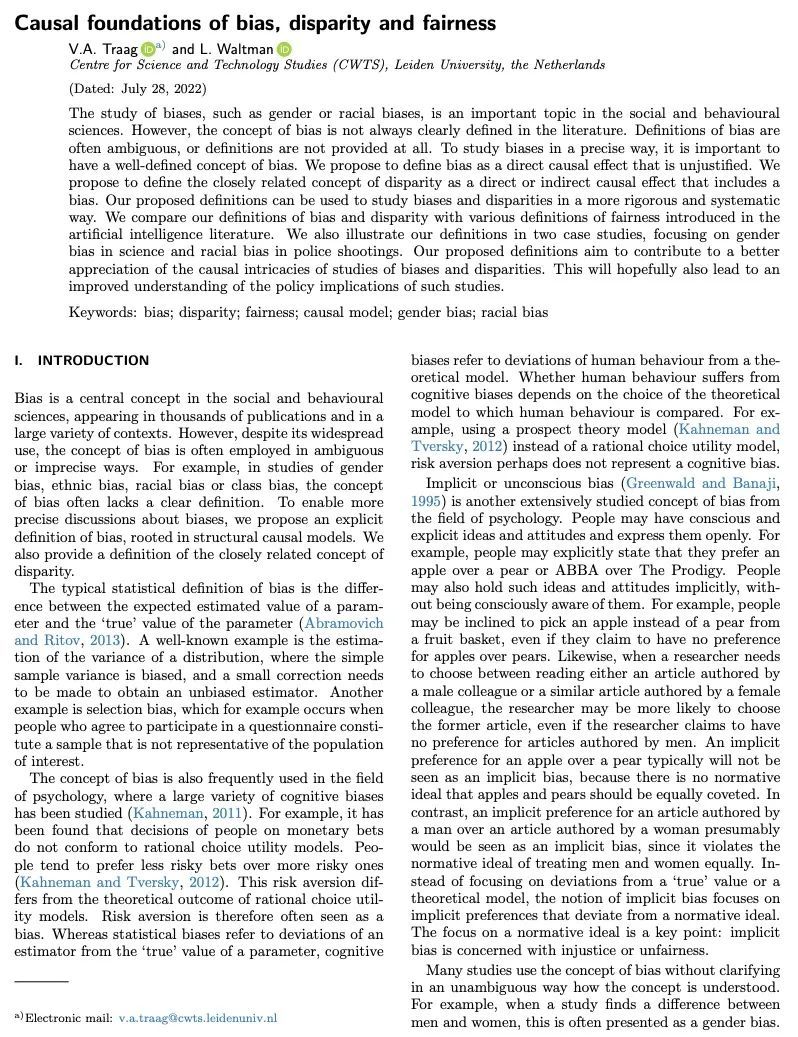2、[AI] Causal foundations of bias, disparity and fairness
