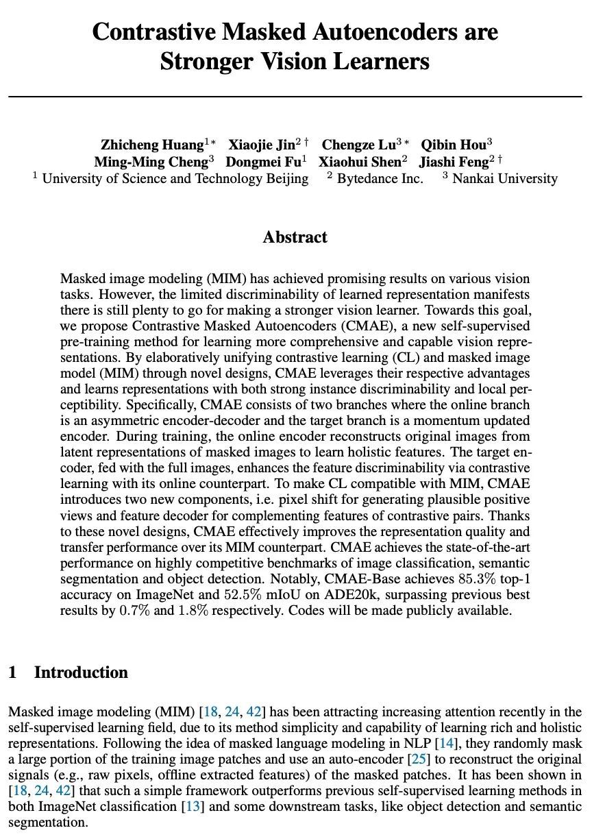1、[CV] Contrastive Masked Autoencoders are Stronger Vision Learners