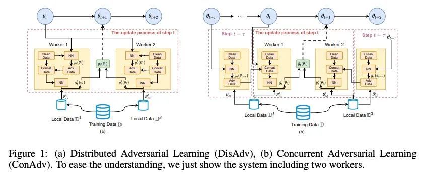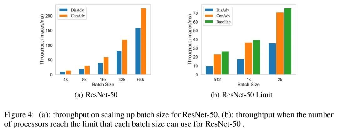 面向大批量训练的并行对抗学习。在用大量GPU/TPU处理器训练神经网络时,大批量训练已成为一种常用技术。随着批量大小的增加,随机优化器往往会收敛到尖锐的局部最小值,导致测试性能下降。目前的方法通常用各种数据增强来增加批处理规模,但本文发现随着批处理规模的增加,数据增强的性能增益会下降,而且数据增强在一定程度上会变得不够。本文建议在大批量训练中用对抗学习来增加批量大小。尽管对抗学习是平滑决策面和偏向平坦区域的自然选择,但是对抗学习还没有成功地应用于大批量训练,因为它在每一步都需要至少两次连续的梯度计算,即使有大量的处理器,与vanilla训练相比,运行时间至少增加一倍。为了克服这个问题,本文提出一种新的并发对抗学习(ConAdv)方法,通过利用定标参数来解耦对抗学习中的顺序梯度计算。实验结果表明,ConAdv可成功地增加ImageNet上ResNet-50训练的批处理量,同时保持较高的精度。特别是,ConAdv在96K的批处理规模下,在ImageNet ResNet-50训练中可以达到75.3%的最高精度,而当ConAdv与数据增强相结合时,精度可进一步提高到76.2%。这也是第一项成功地将ResNet-50的训练批量扩展到96K的工作。