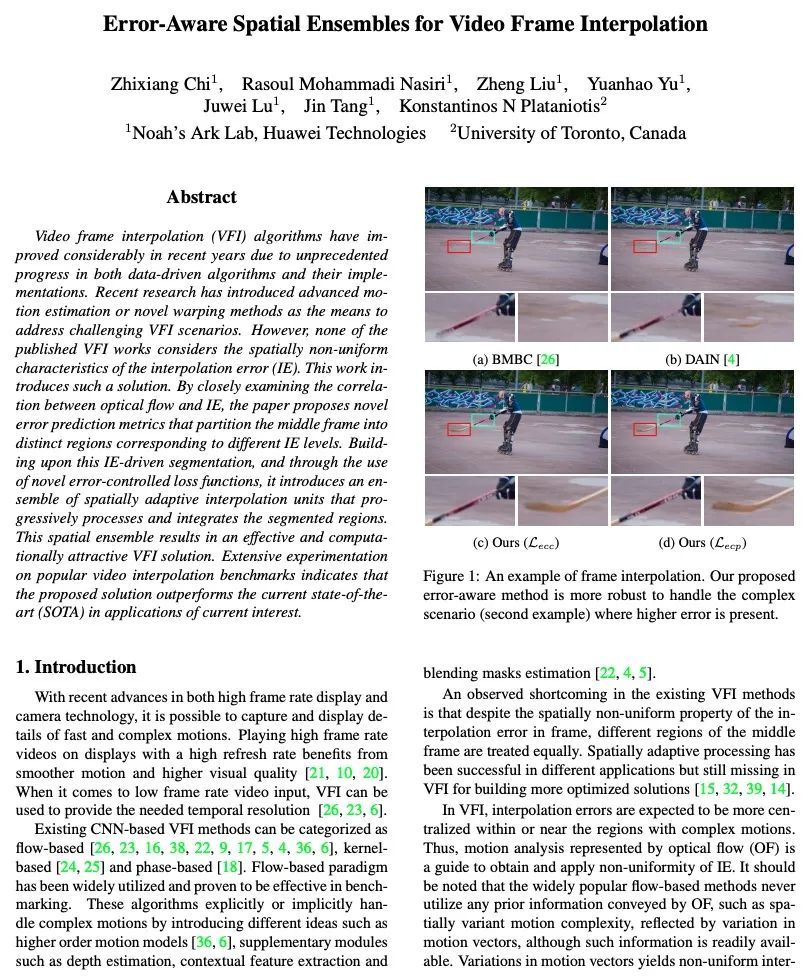 [CV] Error-Aware Spatial Ensembles for Video Frame Interpolation