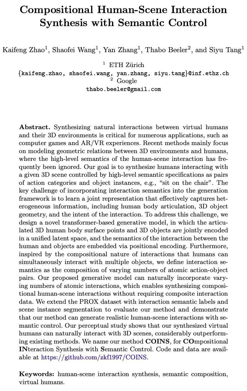 [CV] Compositional Human-Scene Interaction Synthesis with Semantic Control