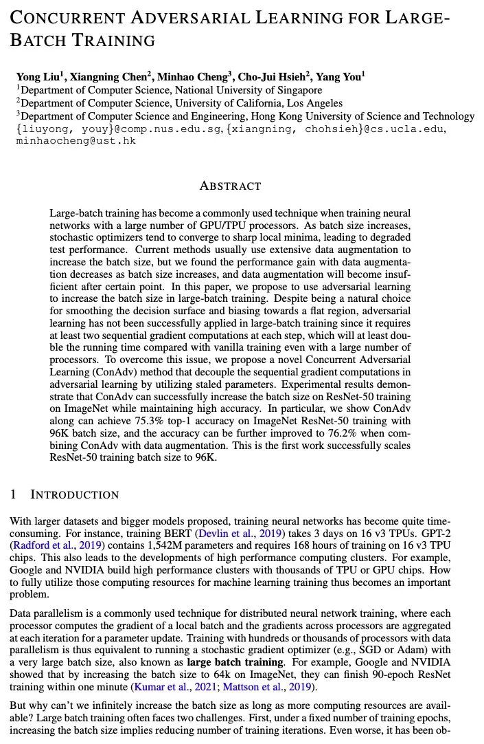 1、[LG] Concurrent Adversarial Learning for Large-Batch TrainingY Liu, X Chen, M Cheng, C Hsieh...