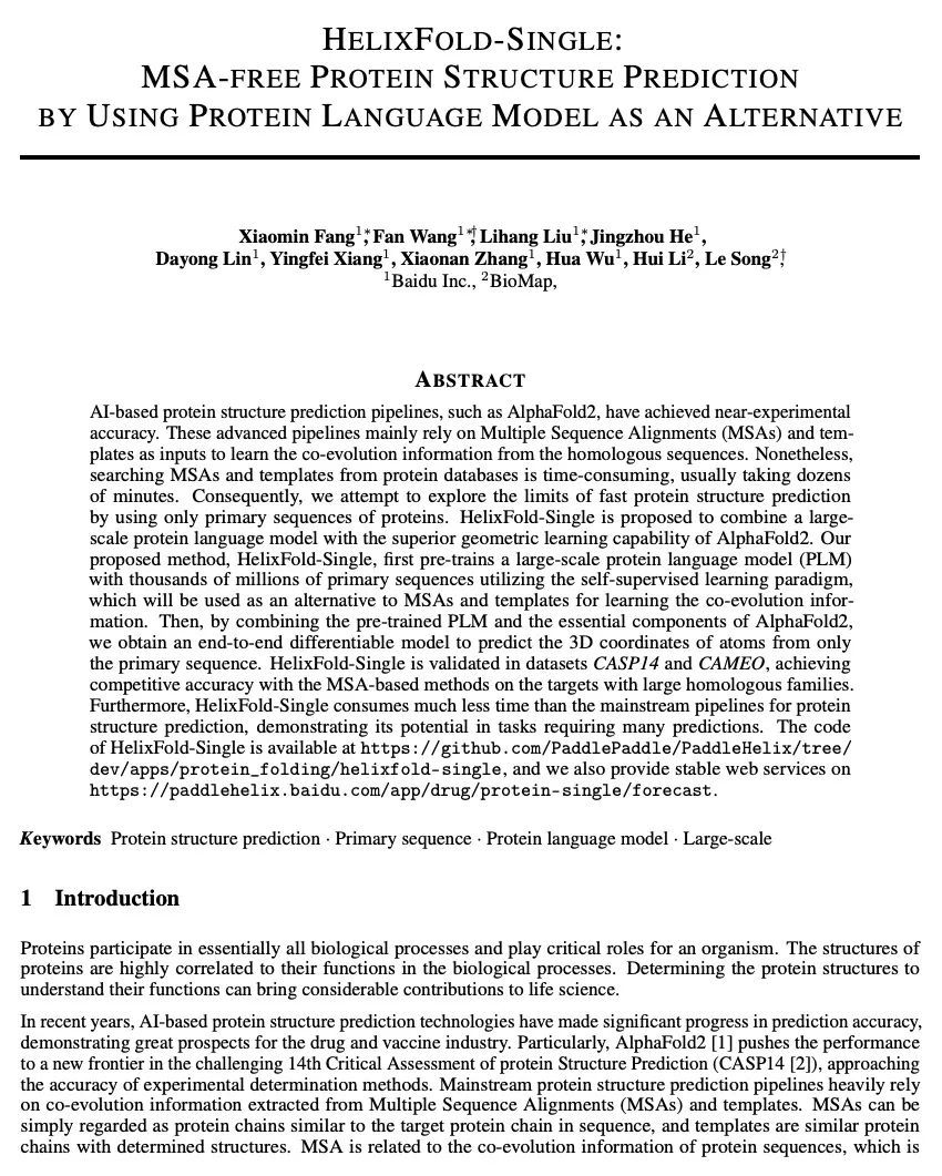 3、[LG] HelixFold-Single: MSA-free Protein Structure Prediction by Using Protein Language Model as an Alternative