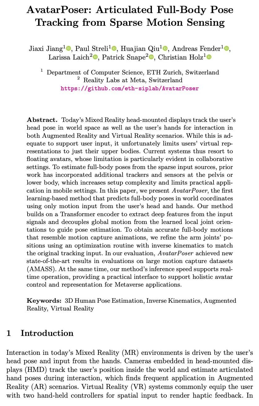 5、[CV] AvatarPoser: Articulated Full-Body Pose Tracking from Sparse Motion Sensing