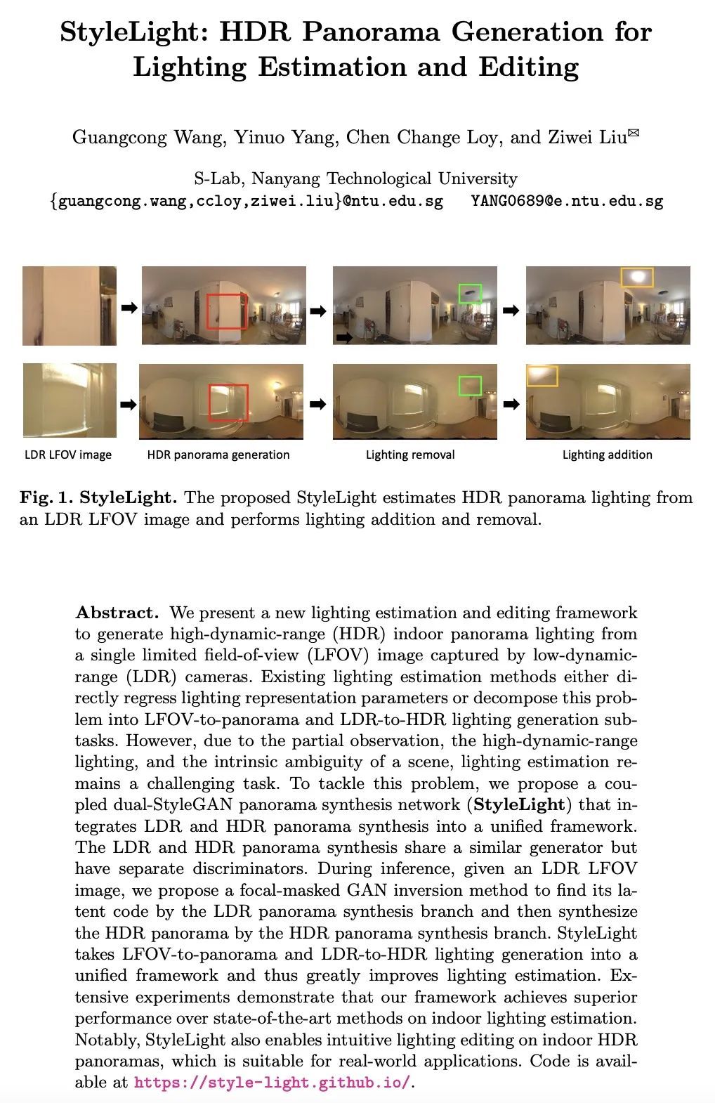 StyleLight:面向照明估计和编辑的HDR全景图生成
