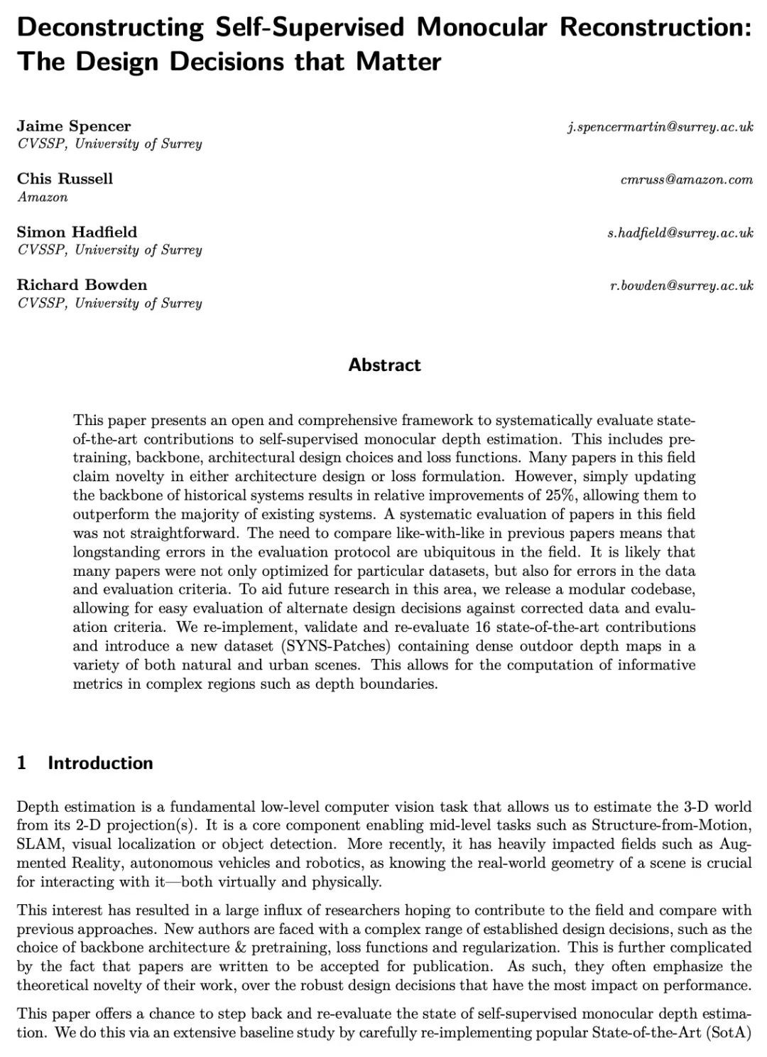 [CV] Deconstructing Self-Supervised Monocular Reconstruction: The Design Decisions that Matter