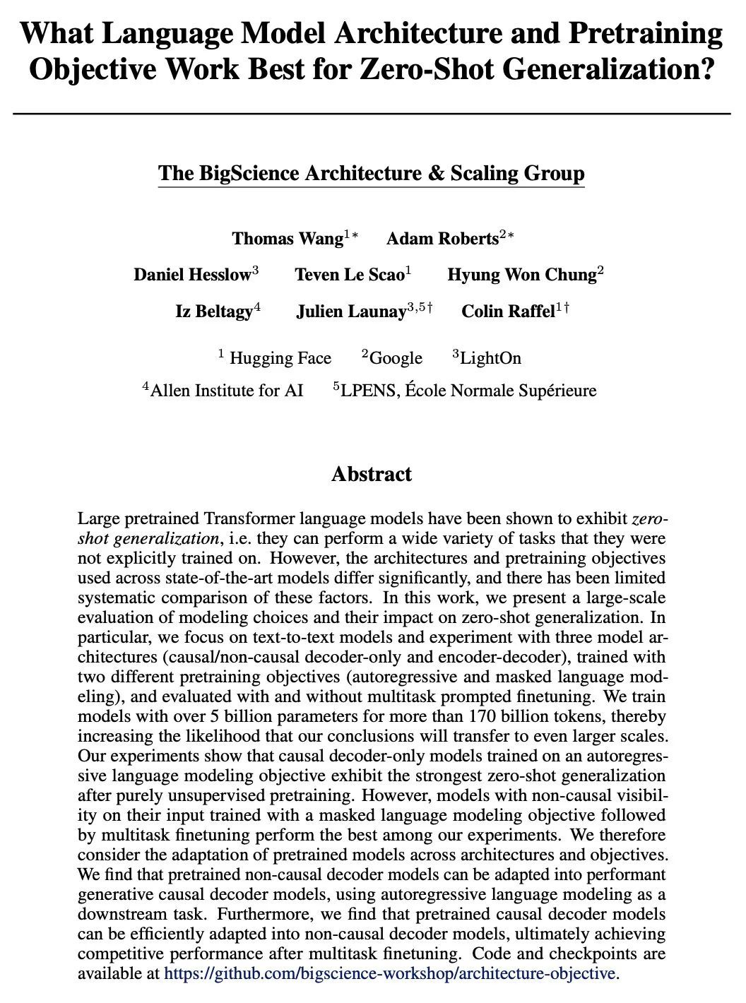 [Hugging Face & Google & LightOn & Allen Institute for AI]