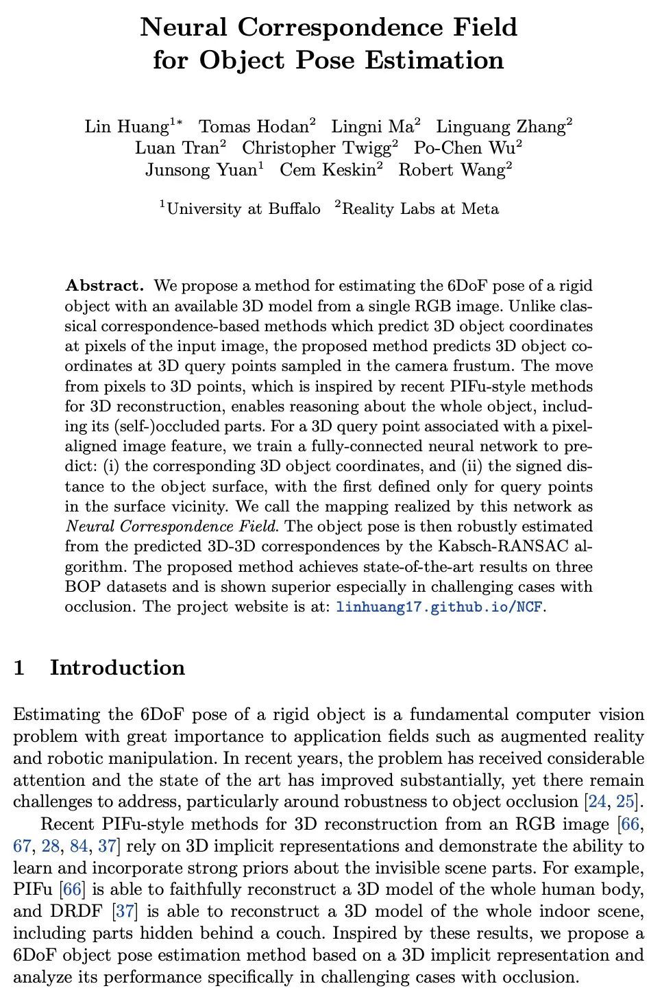 L Huang, T Hodan, L Ma, L Zhang, L Tran, C Twigg, P Wu, J Yuan, C Keskin, R Wang