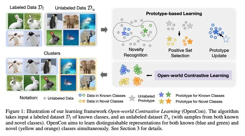开放世界对比学习。最近在对比学习方面的进展显示了显著的性能。然而,绝大多数方法局限于封闭世界环境。本文通过挖掘开放世界环境来丰富表示学习景观,来自新类的未标记样本可以自然地出现在实际场景。为弥补这一差距,本文提出一种新的学习框架——开放世界对比学习(OpenCon),在开放世界环境中为已知类和新类学习高度可分的表示,开放世界设置推广了传统的表示学习并提供更强的灵活性。在未标记数据中分离已知数据与新数据,以及新类中数据的伪监督是至关重要的。OpenCon解决了为已知类和新类学习紧凑表示的挑战,并在此过程中促进新的发现。在具有挑战性的基准数据集上证明了OpenCon的有效性,达到了具有竞争力的性能。在ImageNet数据集上,OpenCon明显优于目前最好的方法,新类和总体分类精度分别达到11.9%和7.4%。