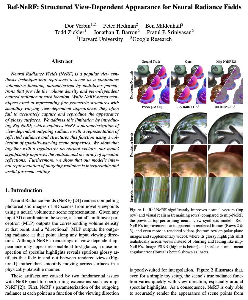 3、[CV] Ref-NeRF: Structured View-Dependent Appearance for Neural Radiance Fields