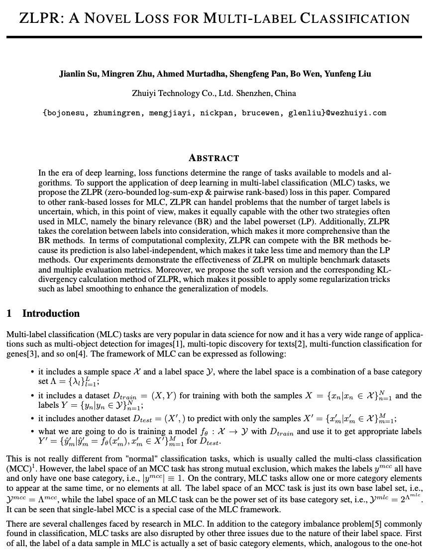 [LG] ZLPR: A Novel Loss for Multi-label Classification
