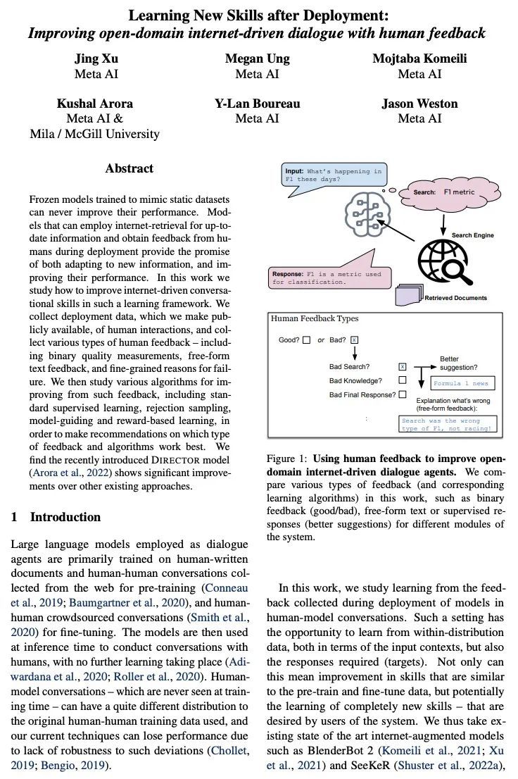 [CL] Learning New Skills after Deployment: Improving open-domain internet-driven dialogue with human feedback