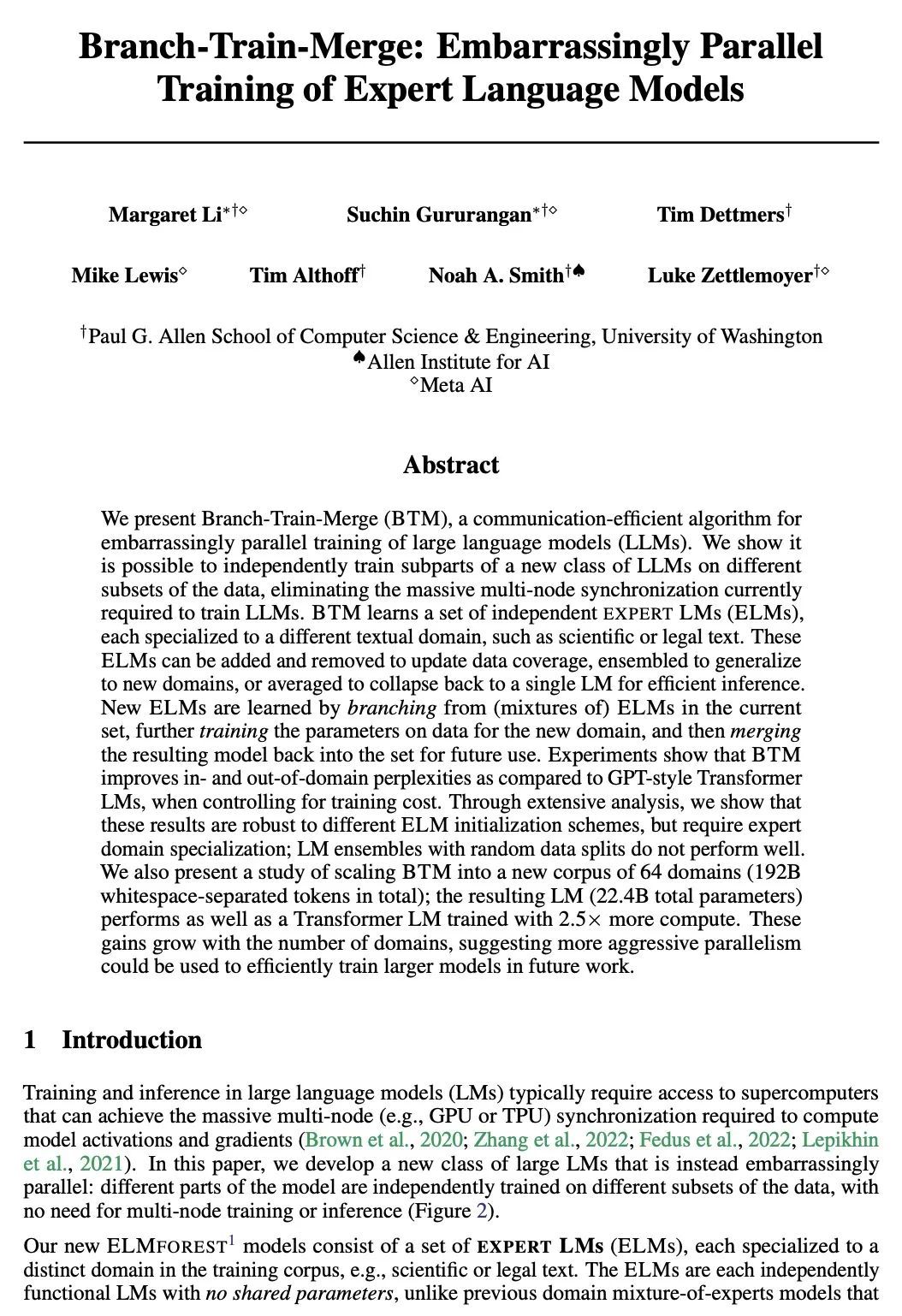 1、[CL] Branch-Train-Merge: Embarrassingly Parallel Training of Expert Language Models