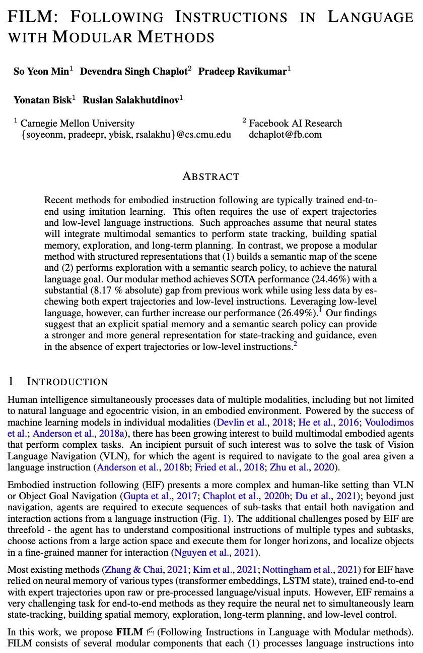 5、[CL] FILM: Following Instructions in Language with Modular Methods
