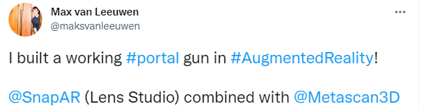 据了解,该传送门工具的作者 Max van Leeuwen 从荷兰电影学院毕业,他利用增强现实技术为许多电影做过视觉特效,现在为 snapchat 的 AR 平台提供各种视频特效。关于传送门背后的技术细节,可以期待一下他后续的详细说明。