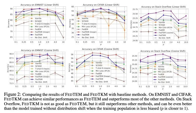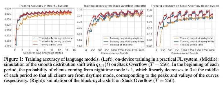 周期性漂移分布下的多分支网络联邦学习。在实践中,联邦学习已被部署为从移动设备上分散的客户数据中训练机器学习模型。据观察,可用于训练的客户端具有随时间变化而变化的周期性分布,这可能导致训练的不稳定性并降低模型性能。本文没有像之前的工作那样用块循环模式来模拟分布变化,而是用混合分布来模拟,在白天和夜间模式之间逐渐转变,并发现这种直观模型更符合实际联邦学习系统中的观察。此外,本文建议联合训练一个聚类模型和一个多分支网络,为来自不同模式的客户分配轻量的专门分支。一个时间性先验被用来大幅提高训练性能。在EMNIST和CIFAR数据集上进行的图像分类以及在Stack Overflow数据集上进行的下一单词预测的实验表明,所提出的算法可以对抗分布漂移的影响,并显著提高最终模型的性能。