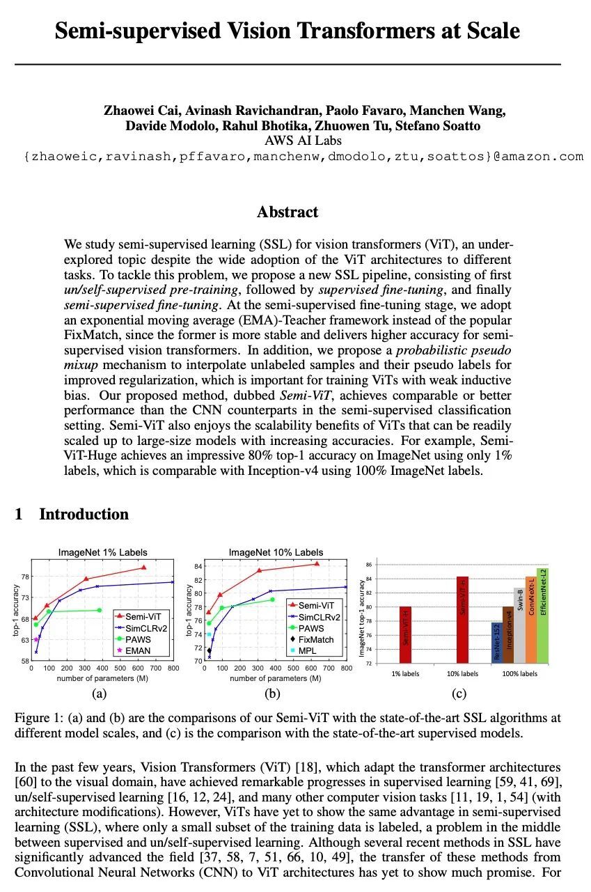 1、[CV] Semi-supervised Vision Transformers at Scale