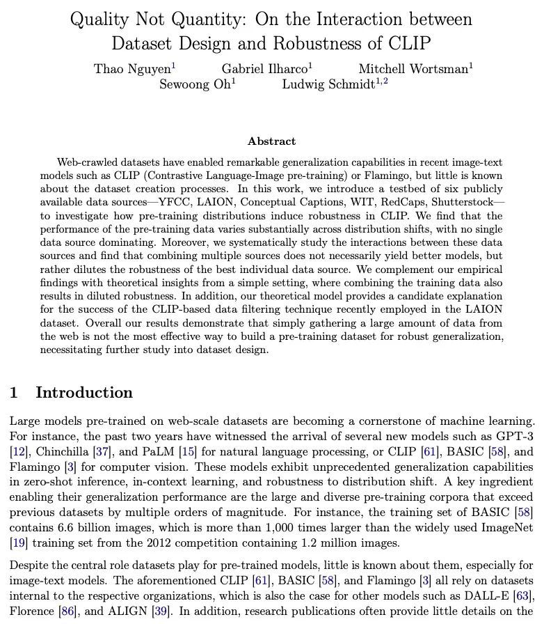 [LG] Quality Not Quantity: On the Interaction between Dataset Design and Robustness of CLIP