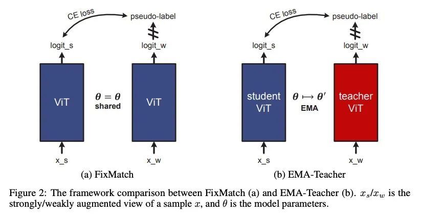 大规模半监督视觉Transformer。本文研究视觉Transformer(ViT)半监督学习(SSL),尽管ViT架构被广泛用于不同的任务,但这是一个未被探索的话题。为了解决该问题,本文提出一种新的SSL管道,首先是无监督/自监督预训练,然后是监督微调,最后是半监督微调。在半监督微调阶段,采用指数移动平均(EMA)教师框架,而不是流行的FixMatch,因为前者更稳定,为半监督视觉Transformer提供更高的精度。此外,本文提出一种概率性的伪混杂机制来插值未标记样本及其伪标签,以改善正则化,这对于训练具有弱归纳偏差的ViT非常重要。所提出的方法称为Semi-ViT,在半监督分类环境中取得了与CNN对应的相当或更好的性能。Semi-ViT还享有ViT的可扩展性优势,可以很容易地扩展到大尺寸的模型,并提高准确率。例如,SemiViT-Huge仅用1%的标签就在ImageNet上取得了令人印象深刻的80%的Top 1精度,这与Inception-v4用100%的ImageNet标签相媲美。